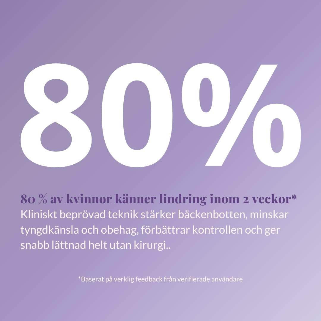 Rapporterade tydligt förbättrad blåskontroll och minskat urinläckage inom 4–6 veckor.